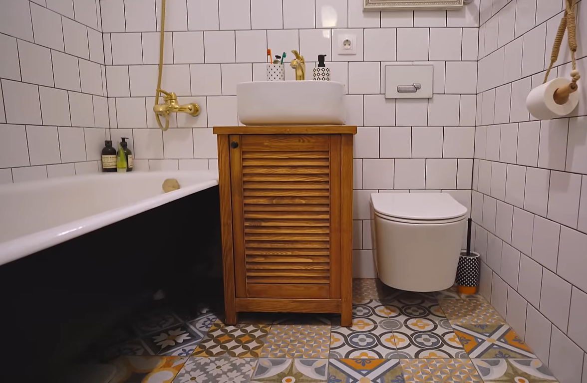 Как круто оформили ванную комнату 3,4 м² в ретростиле3,9