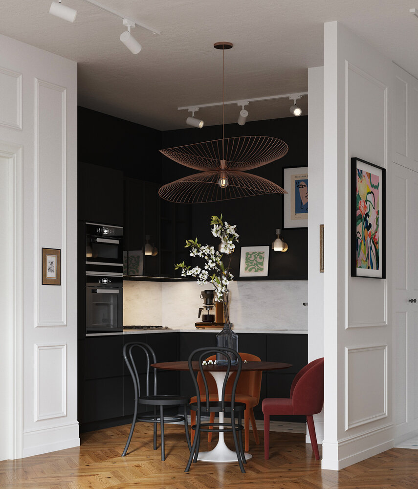 Актуальный дизайн квартиры с крошечной яркой кухнейДизайн