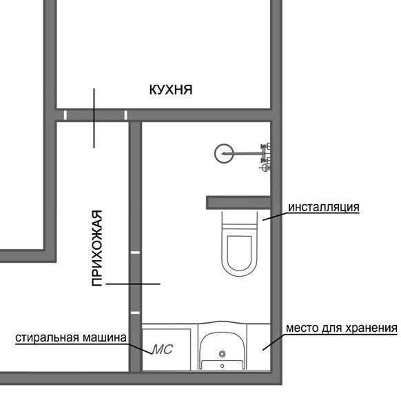 Фотография:  в стиле , Ванная, 8, Перепланировка, планировка санузла, санузел в двухкомнатной квартире дома серии 83, перепланировка маленького санузла, планировка для маленького санузла – фото на INMYROOM