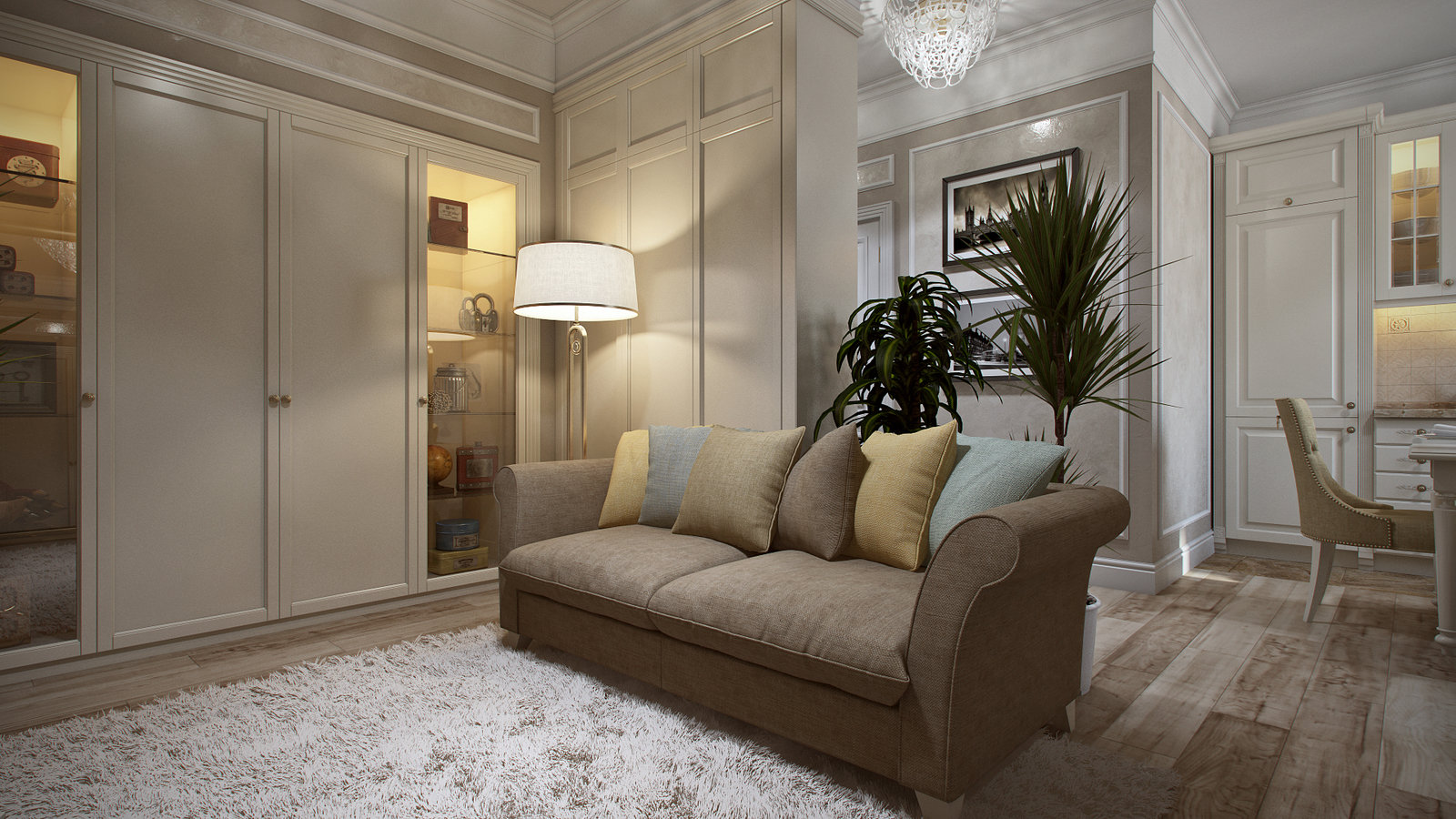 Фотография: Гостиная в стиле Классический, Современный, Прованс и Кантри, Квартира, Россия, Белый, Проект недели, Бежевый, Новая Москва, квартира со свободной планировкой, Дарья Ельникова, прованс в однушке, кухня-столовая – фото на INMYROOM