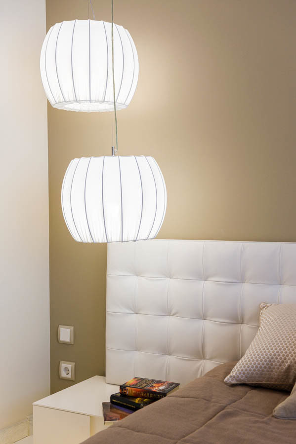 Фотография: Спальня в стиле Современный, Квартира, Россия, iM, Белый, Проект недели, Бежевый, Серый, Сочи, Caparol, Рыжий кот, Marbel, Ax Citterio, Wall and Deco, Map, Tonin Casa, Tomasella, Bubble Chair, Елена Туйсузян, Креазон, как оформить трешку, гардероб в спальне, стеклянный пол в комнате – фото на INMYROOM
