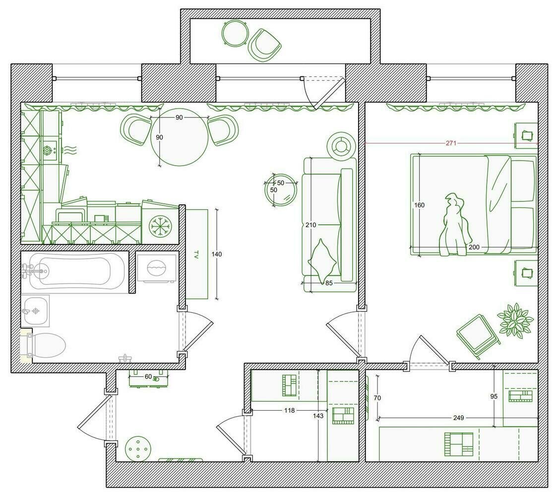 Фотография: Планировки в стиле , Малогабаритная квартира, Квартира, Проект недели, Москва, Кирпичный дом, 2 комнаты, 40-60 метров, Винтажный, Frontstage, Наталья Короткова – фото на INMYROOM