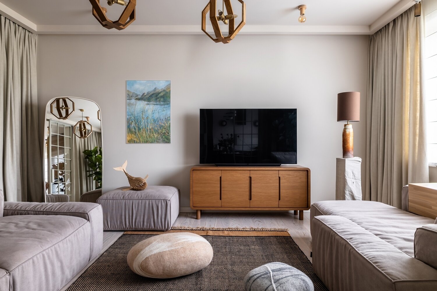 Уютная семейная трешка 95 м² в стиле экошикДизайн