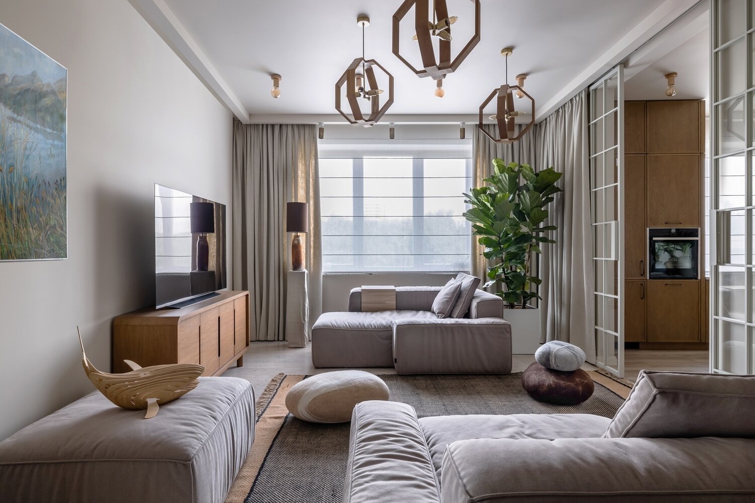 Уютная семейная трешка 95 м² в стиле экошикДизайн