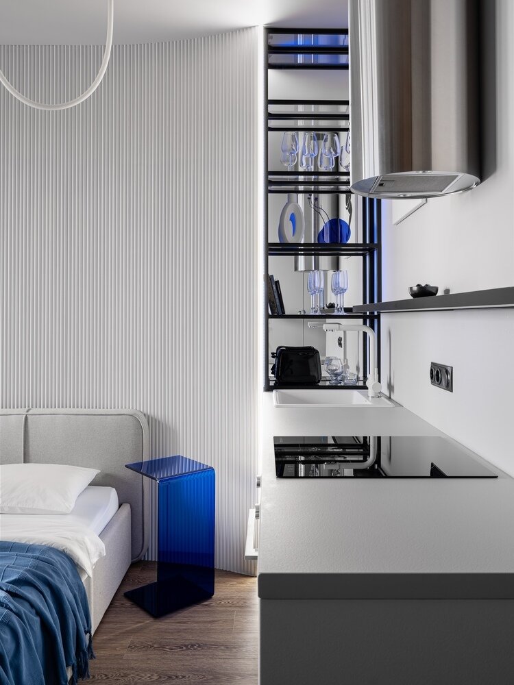 Мини-студия 25 м² со множеством мест для храненияДизайн