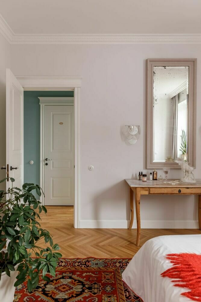 Фотография: Спальня в стиле Скандинавский, Эклектика, Винтажный, Квартира, Проект недели, дизайн интерьера в сталинке, Сталинка, 4 и больше, Более 90 метров – фото на INMYROOM