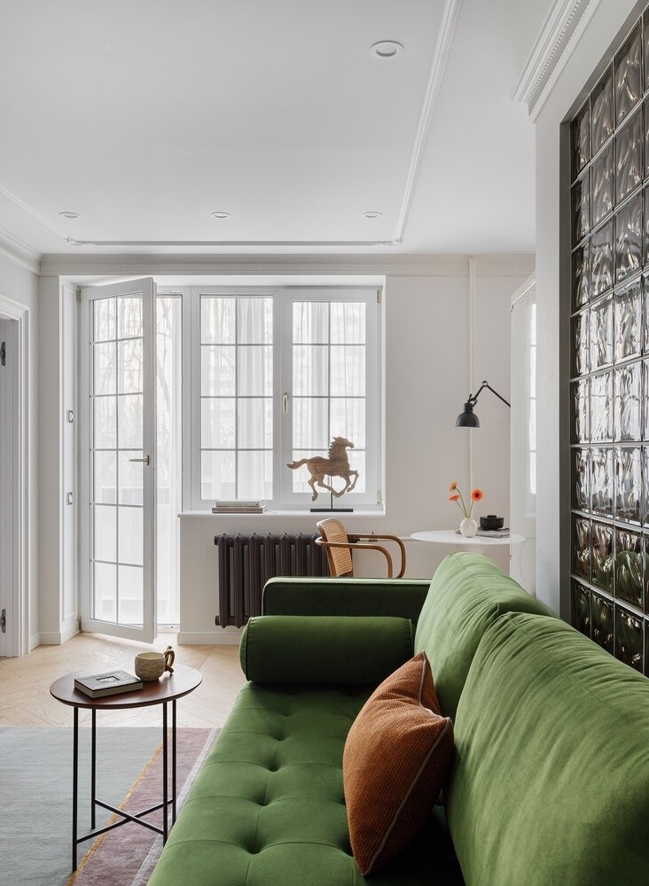 Фотография: Гостиная в стиле Современный, Эклектика, Малогабаритная квартира, Квартира, Проект недели, Москва, Хрущевка, 2 комнаты, 40-60 метров, Мария Гульбекян, Анастасия Гурова – фото на INMYROOM