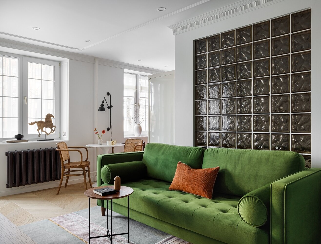 Фотография: Гостиная в стиле Современный, Эклектика, Малогабаритная квартира, Квартира, Проект недели, Москва, Хрущевка, 2 комнаты, 40-60 метров, Мария Гульбекян, Анастасия Гурова – фото на INMYROOM