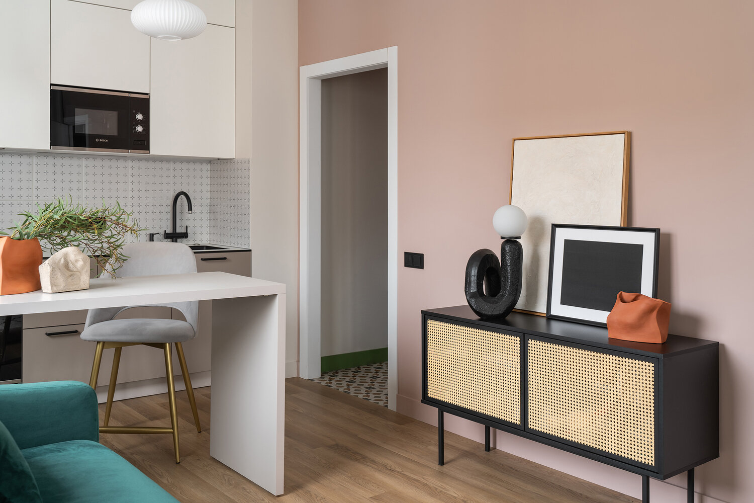 Двушка 48 м² с продуманным хранением и цветными деталямиДизайн