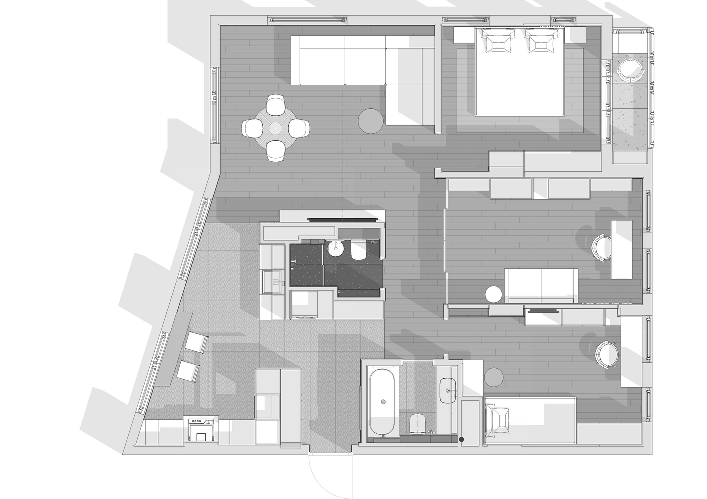 Семейная квартира 100 м² с круговой планировкойДизайн