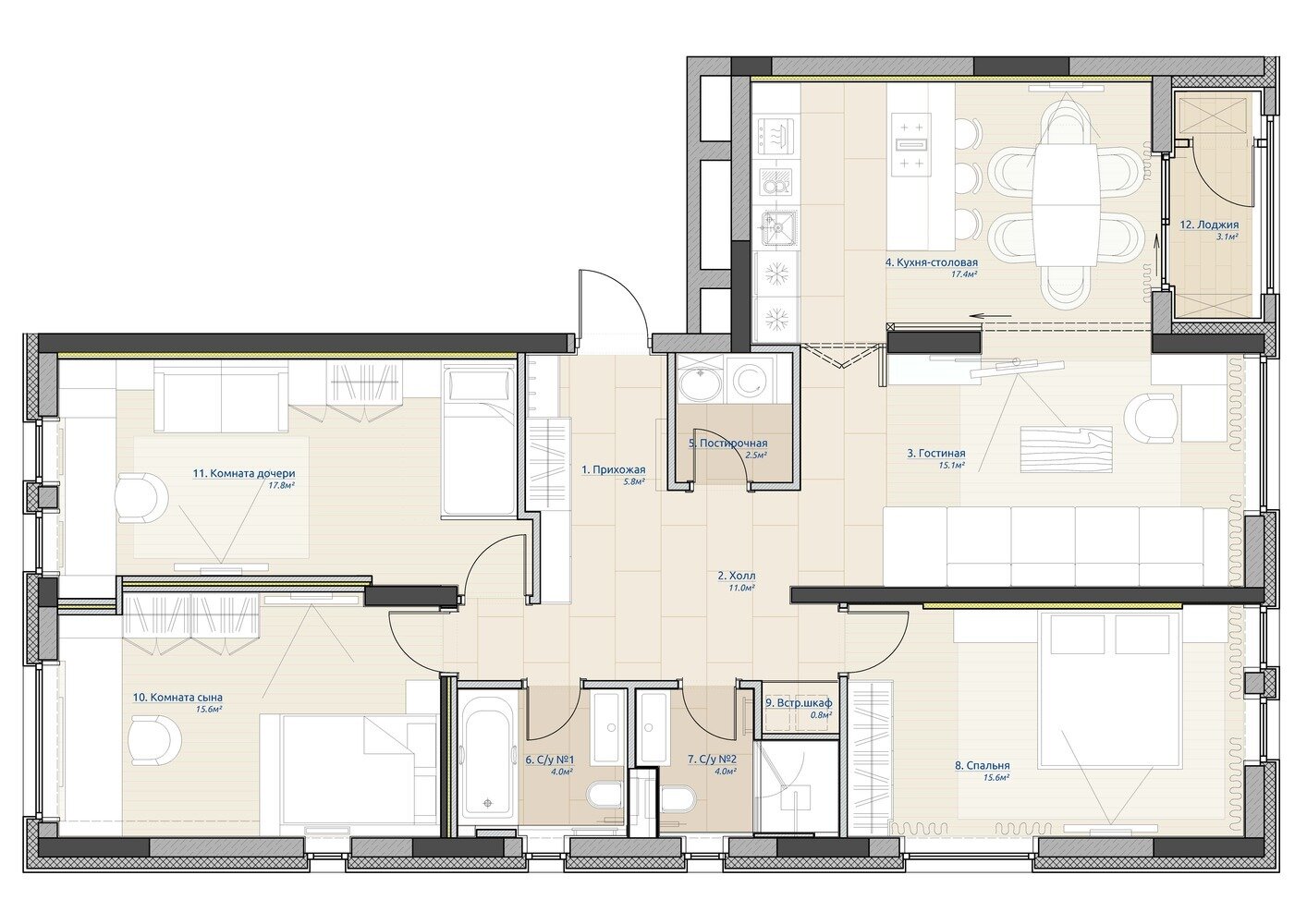 Фотография:  в стиле , Современный, Квартира, Проект недели, Москва, Монолитный дом, 4 и больше, Более 90 метров, Марагарита Григораш – фото на INMYROOM