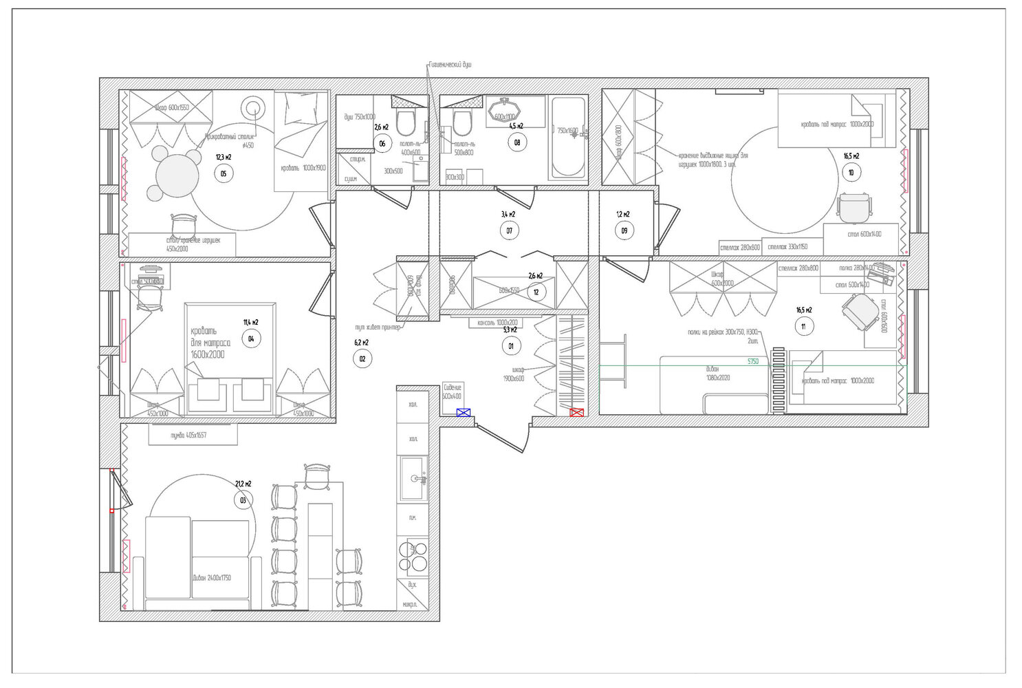 Интересная современная квартира 104 м² с тремя детскимиДизайн