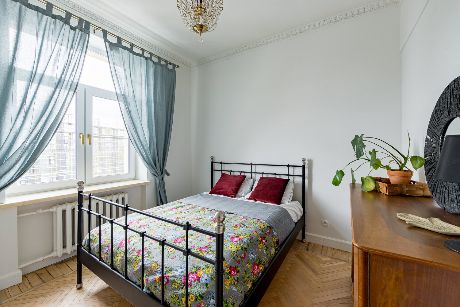 Фотография: Спальня в стиле Скандинавский, Эклектика, Винтажный, Квартира, Проект недели, Москва, Сталинка, Кирпичный дом, 2 комнаты, 40-60 метров, Анастасия Разливанова, Ольга Гусева – фото на INMYROOM
