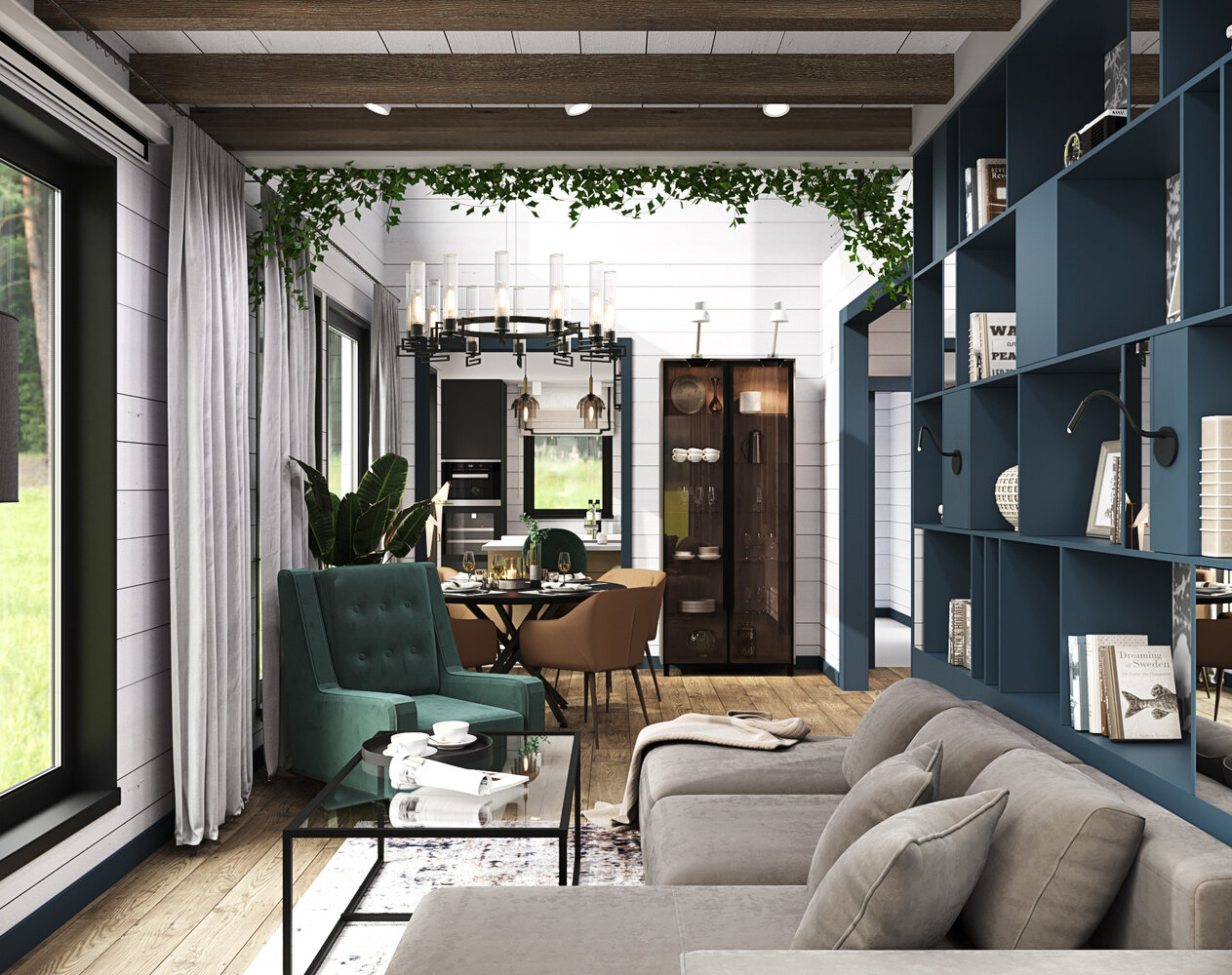 Проект двухэтажного дома из бруса в скандинавском стилеДизайн