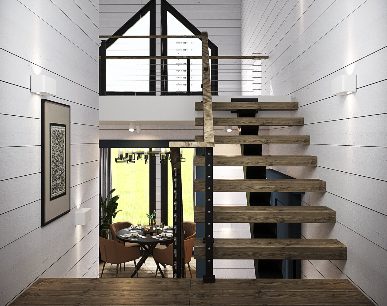 Проект двухэтажного дома из бруса в скандинавском стилеДизайн
