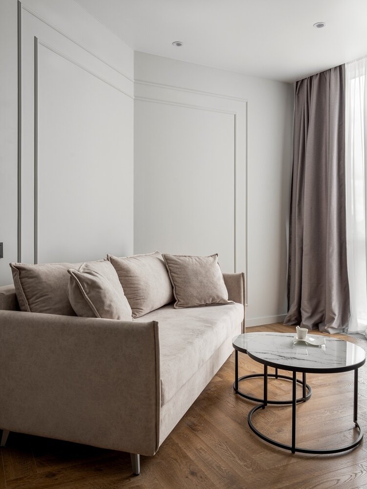 В отделке использованы бюджетные материалы: керамогранит, кварцвинил и краска для стен.
