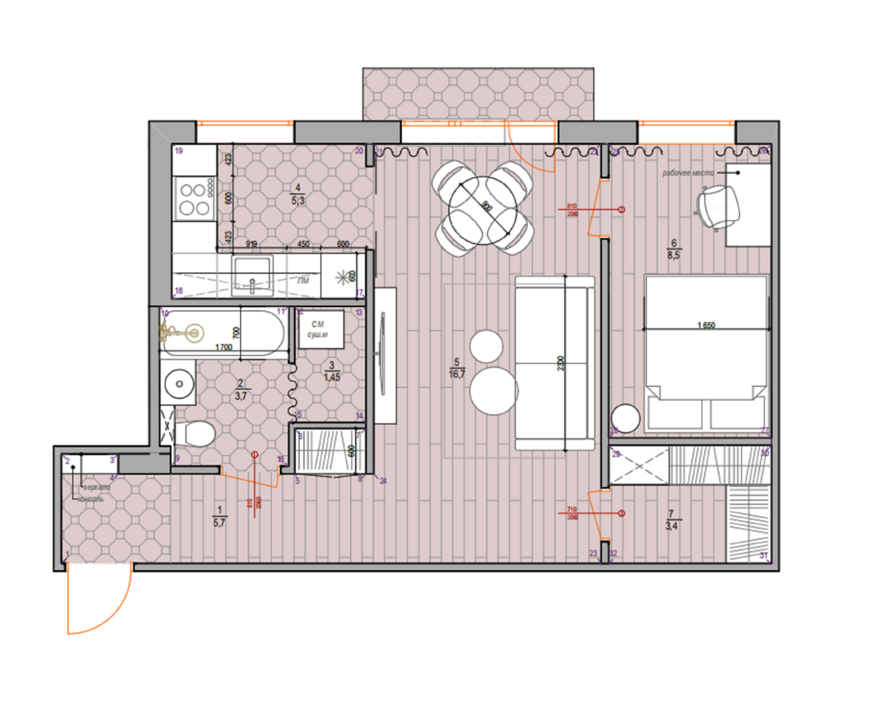 Фотография: Планировки в стиле , Современный, Квартира, Проект недели, Челябинск, Хрущевка, Кирпичный дом, 2 комнаты, 40-60 метров, Мария Тарташник – фото на INMYROOM