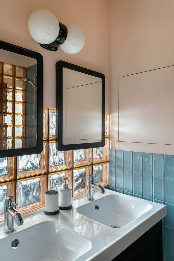 Эффектная ванная комната со стеной из стеклоблоков4,8