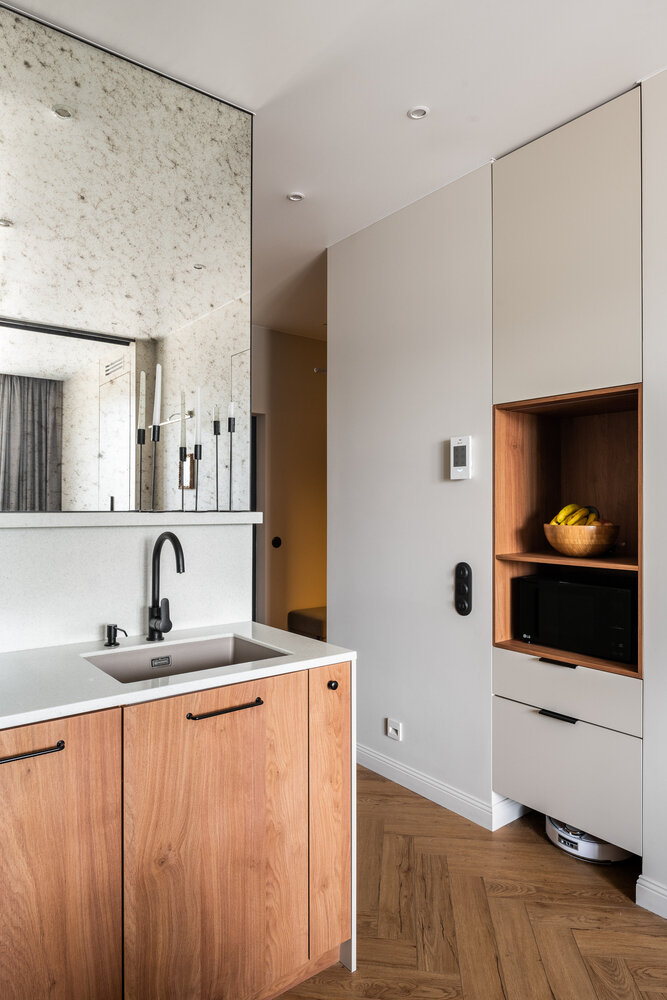 Фотография: Кухня и столовая в стиле Современный, Минимализм, Квартира, Проект недели, Москва, Buro Brainstorm, 40-60 метров – фото на INMYROOM
