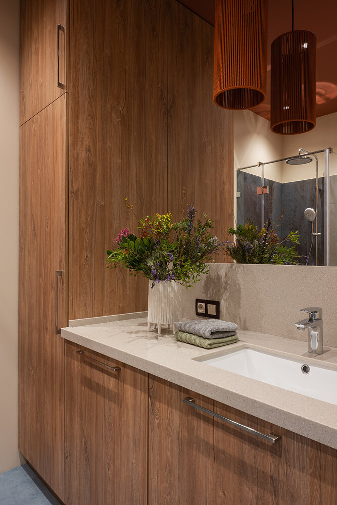 Студия 37 м² с круговой планировкой в стиле колорблокДизайн