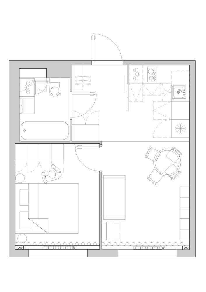 Фотография: Планировки в стиле , Современный, Малогабаритная квартира, Квартира, Проект дня, Москва, 2 комнаты, до 40 метров, Pallage Studio, Ольга Митник – фото на INMYROOM