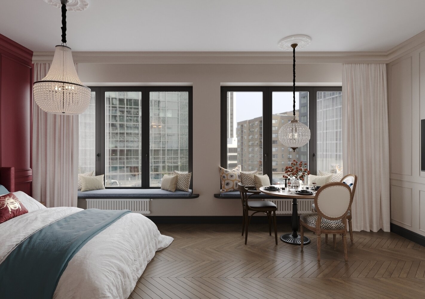 Стильная малогабаритка 35 м² с винными акцентамиДизайн