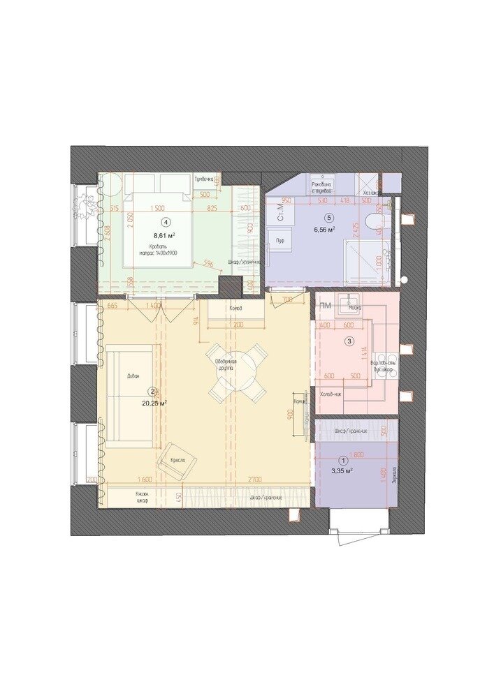 Фотография: Планировки в стиле , Квартира, Проект дня, Москва, Сталинка, Кирпичный дом, 2 комнаты, 40-60 метров, Дарья Филиппова – фото на INMYROOM