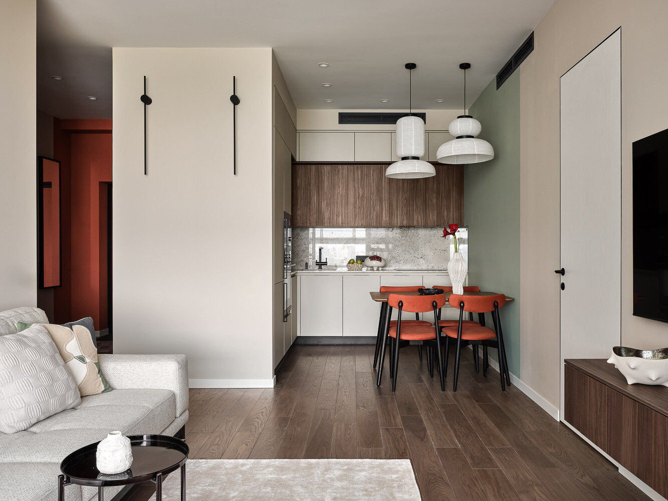 Фотография: Гостиная в стиле Современный, Квартира, Проект дня, Москва, Монолитный дом, 3 комнаты, 60-90 метров, Ольга Козина – фото на INMYROOM