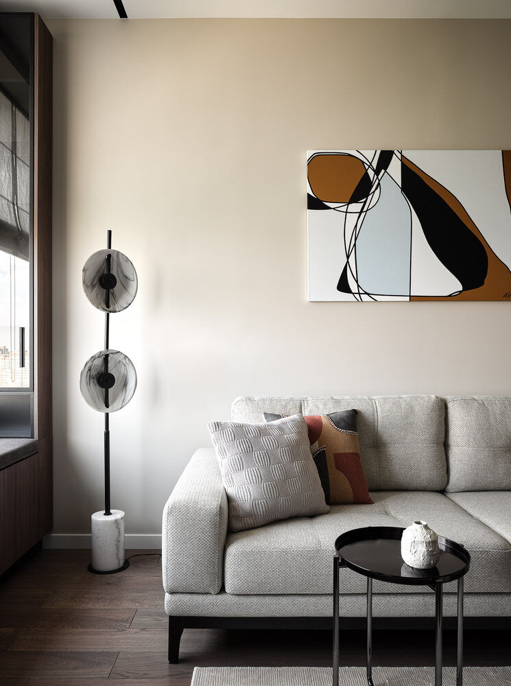 Фотография: Гостиная в стиле Современный, Квартира, Проект дня, Москва, Монолитный дом, 3 комнаты, 60-90 метров, Ольга Козина – фото на INMYROOM
