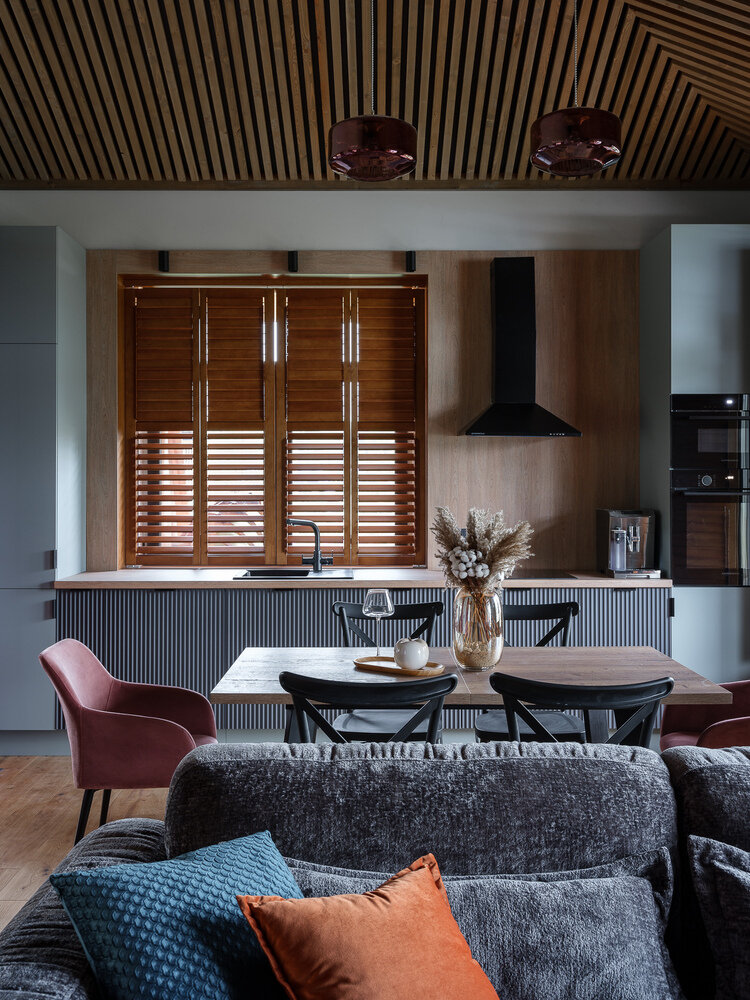 Интерьер загородного дома 177 м², в котором много дереваДизайн