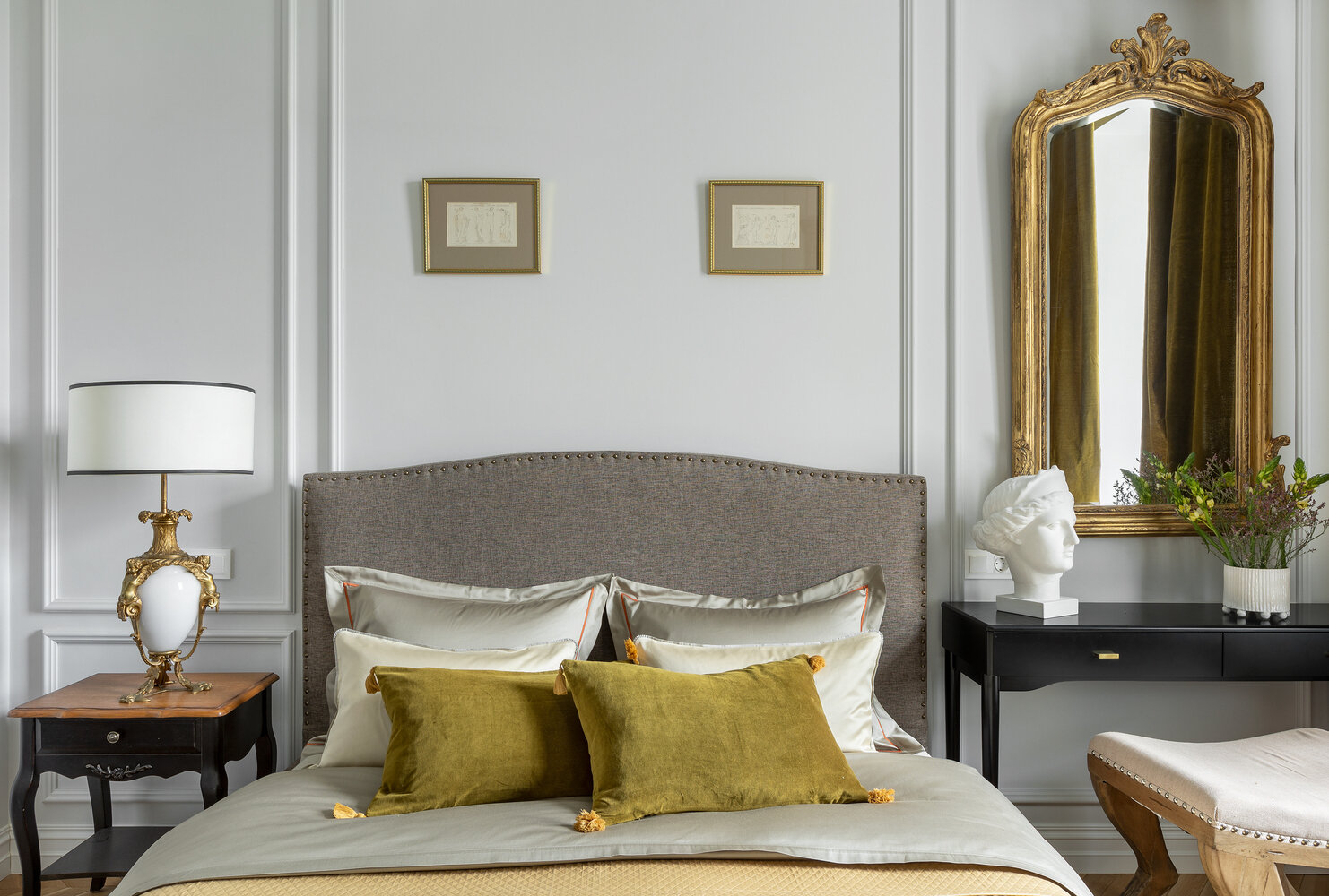 Фотография: Спальня в стиле Классический, Современный, Эклектика, Квартира, Проект дня, Москва, Кирпичный дом, 3 комнаты, 60-90 метров, Анастасия Петухова – фото на INMYROOM
