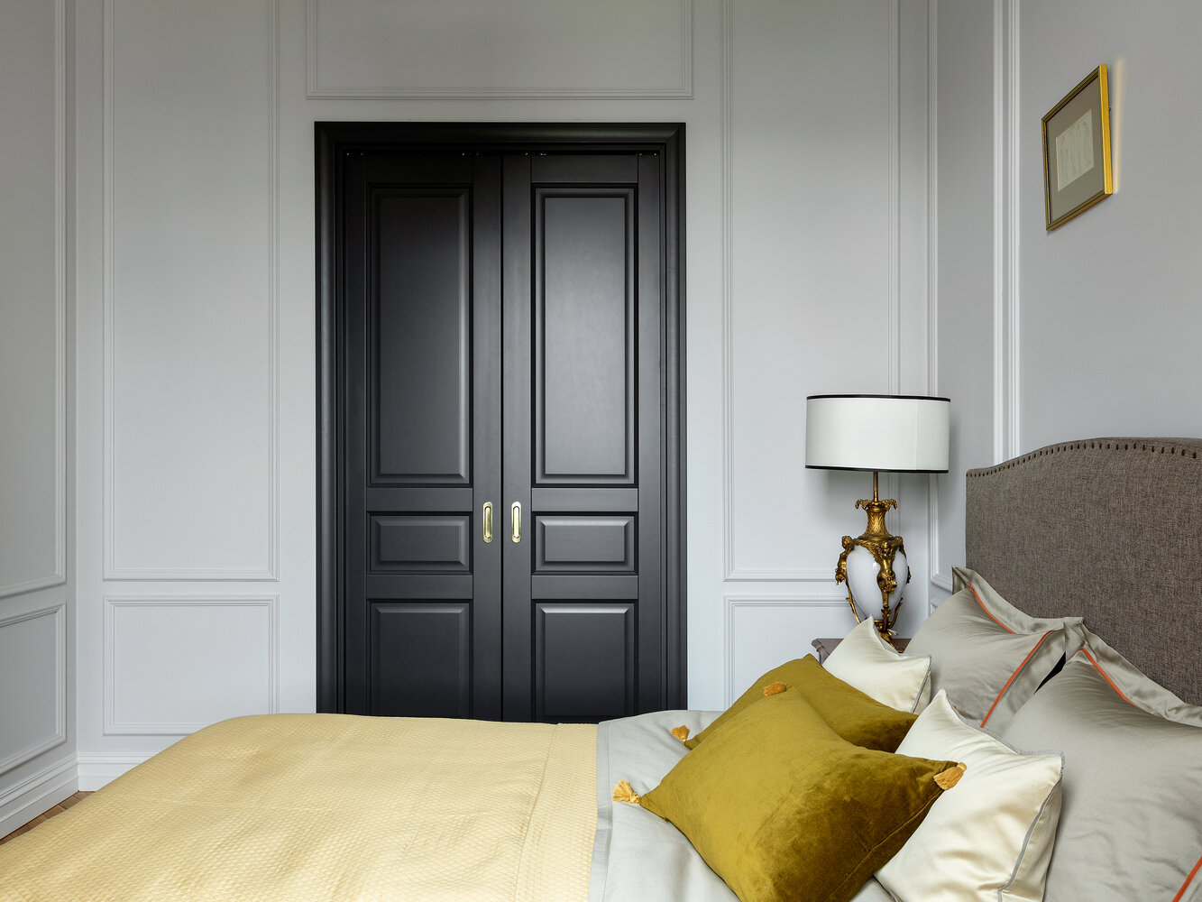 Фотография: Спальня в стиле Классический, Современный, Эклектика, Квартира, Проект дня, Москва, Кирпичный дом, 3 комнаты, 60-90 метров, Анастасия Петухова – фото на INMYROOM