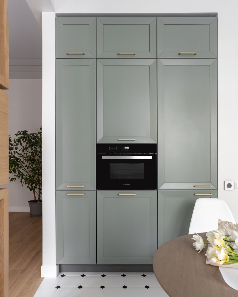 Фотография: Кухня и столовая в стиле Скандинавский, Современный, Квартира, Проект дня, Москва, Кирпичный дом, 2 комнаты, 60-90 метров, Тая Кипри – фото на INMYROOM