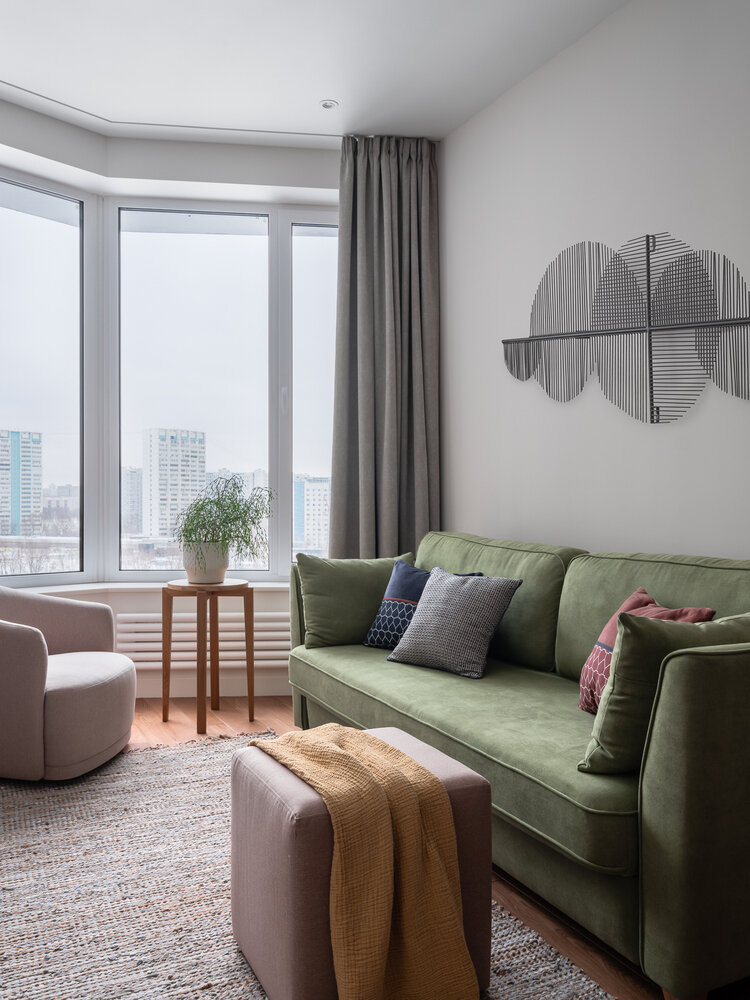 Фотография: Гостиная в стиле Современный, Квартира, Проект дня, Москва, Эко, 2 комнаты, 60-90 метров, Лина Савина – фото на INMYROOM