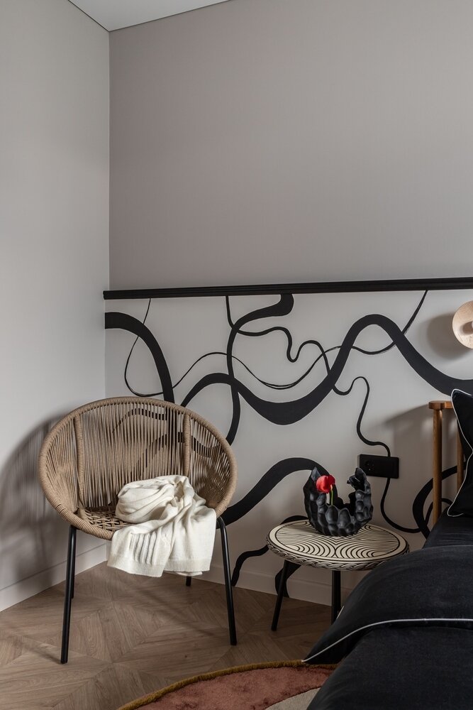 Фотография: Спальня в стиле Современный, Минимализм, Квартира, Проект дня, Москва, П-44, Панельный дом, 2 комнаты, 40-60 метров, Винтажный, Яна Гаевская – фото на INMYROOM