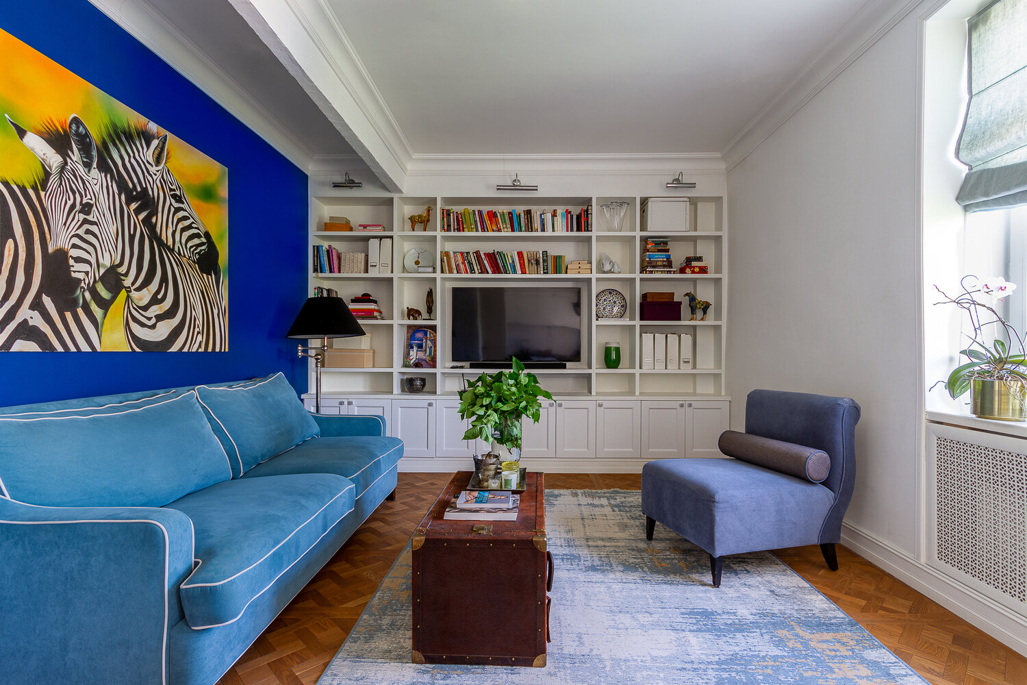Фотография: Гостиная в стиле Современный, Эклектика, Скандинавский, Квартира, Проект дня, Москва, Сталинка, Кирпичный дом, 3 комнаты, 60-90 метров, Кристина Патеракис – фото на INMYROOM
