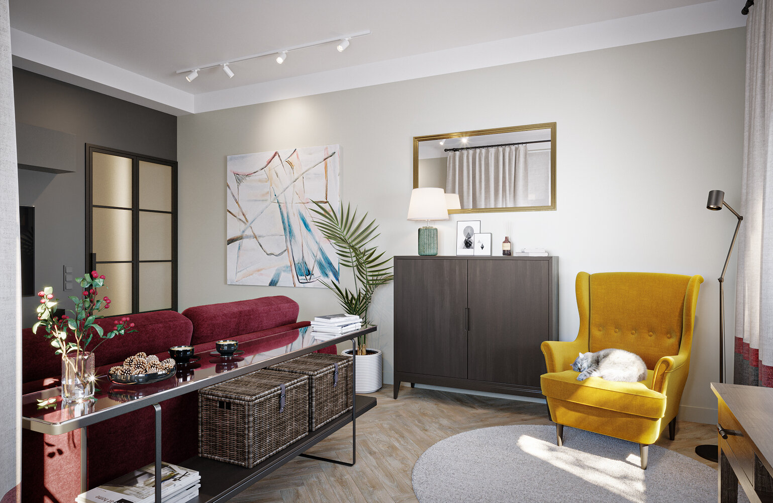 Стильная современная двушка 67 м² для любительницы кошекДизайн