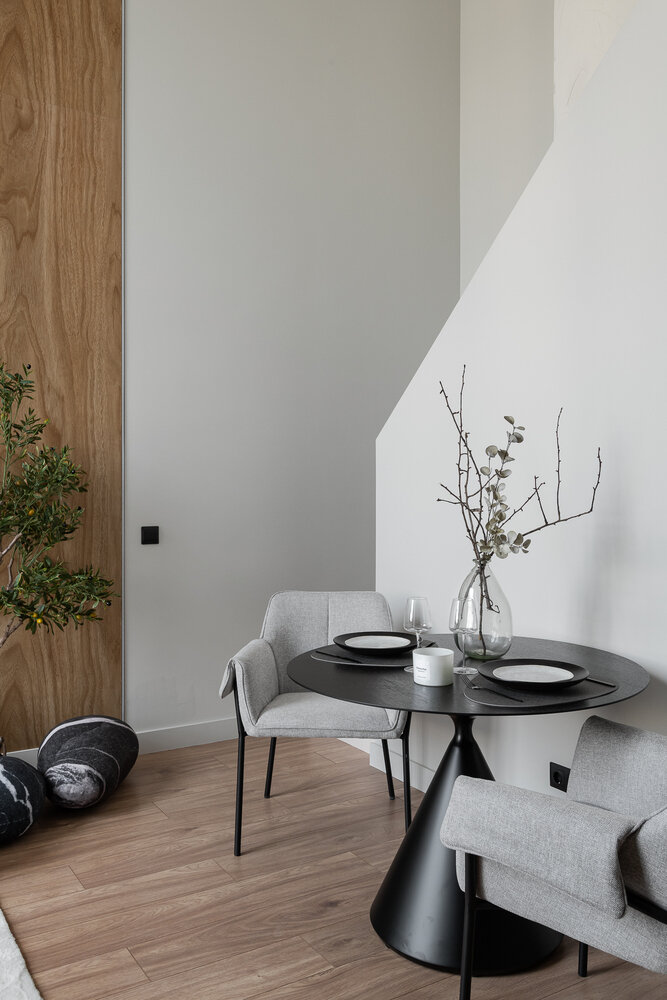 Стол собран по частям: столешницу из натурального дерева и металлическое подстолье купили отдельно и собрали в единую композицию.