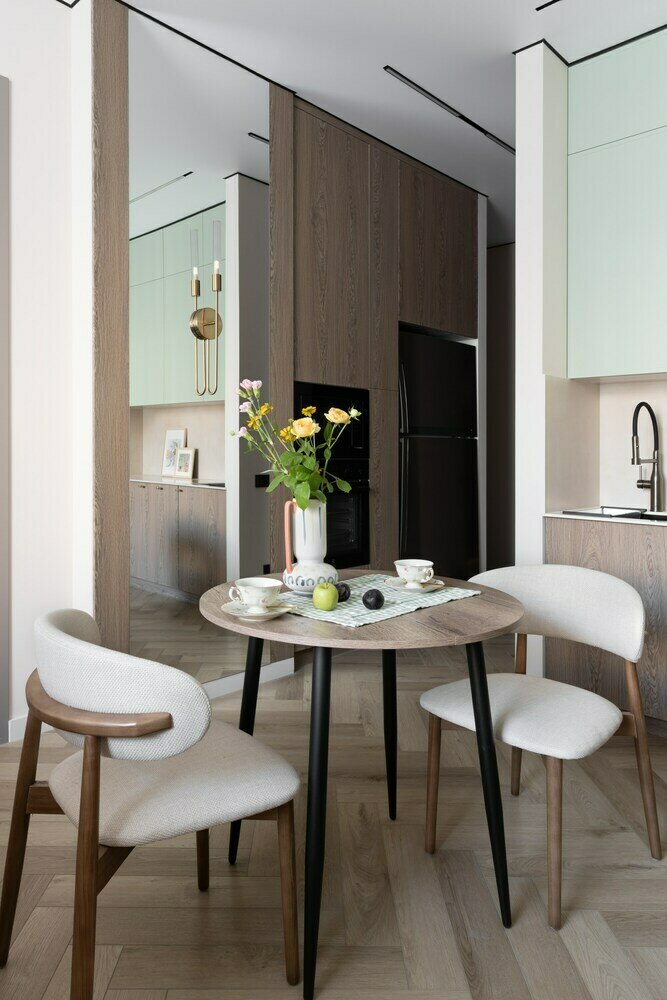 Элегантный интерьер трешки 70 м² с интересной отделкойДизайн