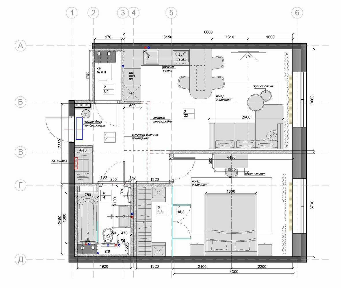 Элегантный интерьер двухкомнатной квартиры 54 м²Дизайн