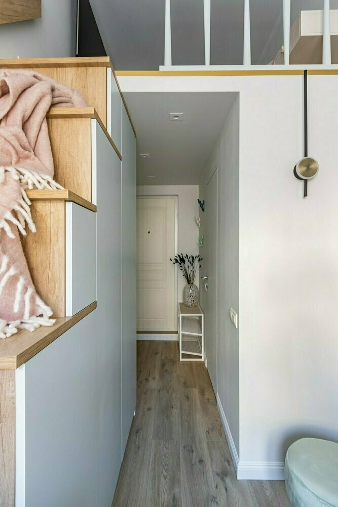 Фотография:  в стиле , Квартира, Дизайн интерьера, Переделка, как оформить малогабаритку, дизайн малогабаритки, идеи для малогабаритки, интерьер квартиры, малогабаритка, 1 комната, до 40 метров, зонирование в малогабаритке, микроквартира, Полина Андреева – фото на INMYROOM