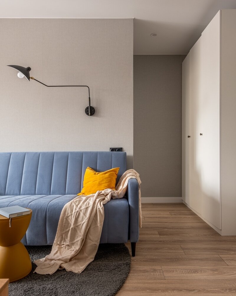 Фотография: Гостиная в стиле Современный, Малогабаритная квартира, Квартира, Проект дня, Москва, Хрущевка, 2 комнаты, 40-60 метров, Галина Овчинникова – фото на INMYROOM