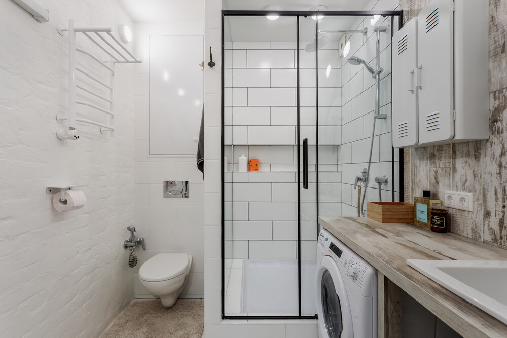 Фотография:  в стиле , Ванная, Переделка, ванная комната в скандинавском стиле, маленькая ванная комната, ванна в хрущёвке – фото на INMYROOM