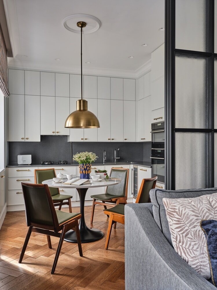 Винтажные стулья были в прекрасном состоянии, а кожаная обивка так понравилась заказчикам, что они не захотели ее менять.