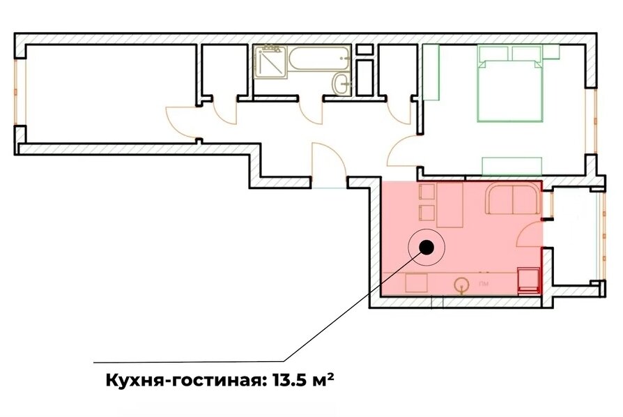 Фотография:  в стиле , Квартира, Интерьер комнат, Дизайн интерьера, Переделка, 40-60 метров, евродвушка, типовая квартира, дизайн типовой квартиры, Мила Генч, идеи для ремонта, как увеличили жилплощадь – фото на INMYROOM