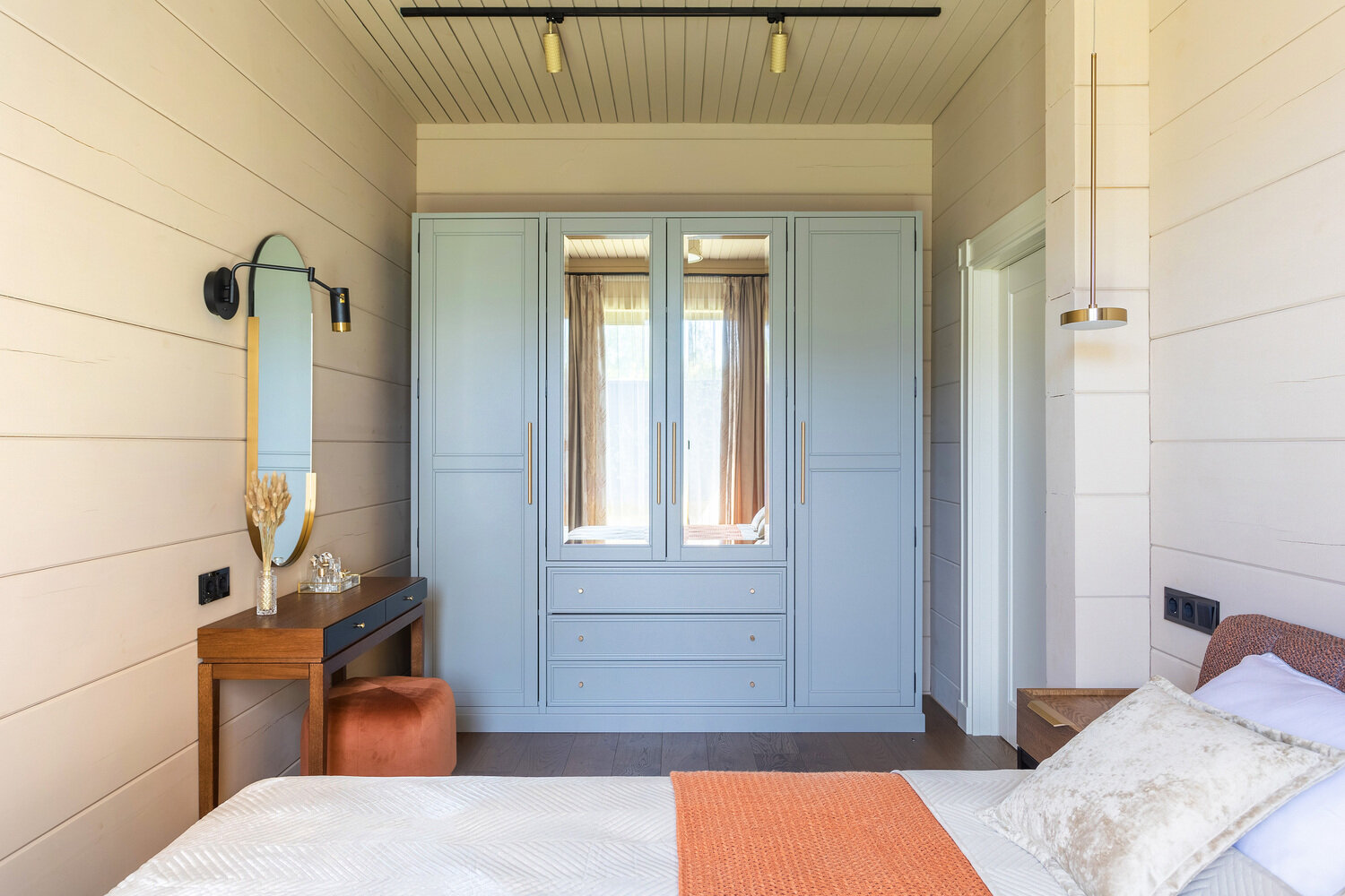 Дом 154 м² с биокамином и панно из оникса в гостинойДизайн