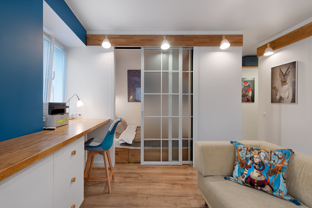 Фотография:  в стиле , Спальня, Квартира, Интерьер комнат, Дизайн интерьера, Переделка, интерьер спальни, Маленькая спальня, спальня в нише, дизайн спальни, Кирпичный дом, небольшая спальня, идеи для студии, идеи для ремонта, переделка спальня – фото на INMYROOM