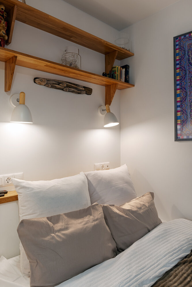 Фотография:  в стиле , Спальня, Квартира, Интерьер комнат, Дизайн интерьера, Переделка, интерьер спальни, Маленькая спальня, спальня в нише, дизайн спальни, Кирпичный дом, небольшая спальня, идеи для студии, идеи для ремонта, переделка спальня – фото на INMYROOM