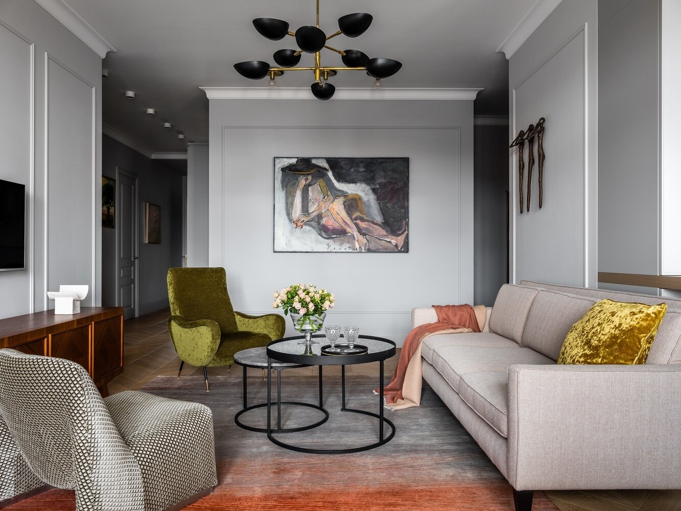 Фотография: Гостиная в стиле Классический, Современный, Квартира, Проект дня, Москва, Инна Величко, 4 и больше – фото на INMYROOM