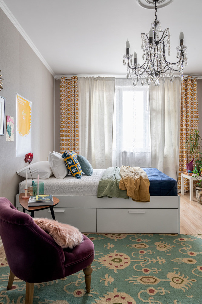 Фотография: Спальня в стиле Прованс и Кантри, Скандинавский, Эклектика, Квартира, Проект недели, Красногорск, 1 комната, до 40 метров, Ирина Очирова – фото на INMYROOM